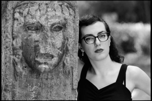 Portrait of my girlfriend next to an old sculpture in Naples, Italy.