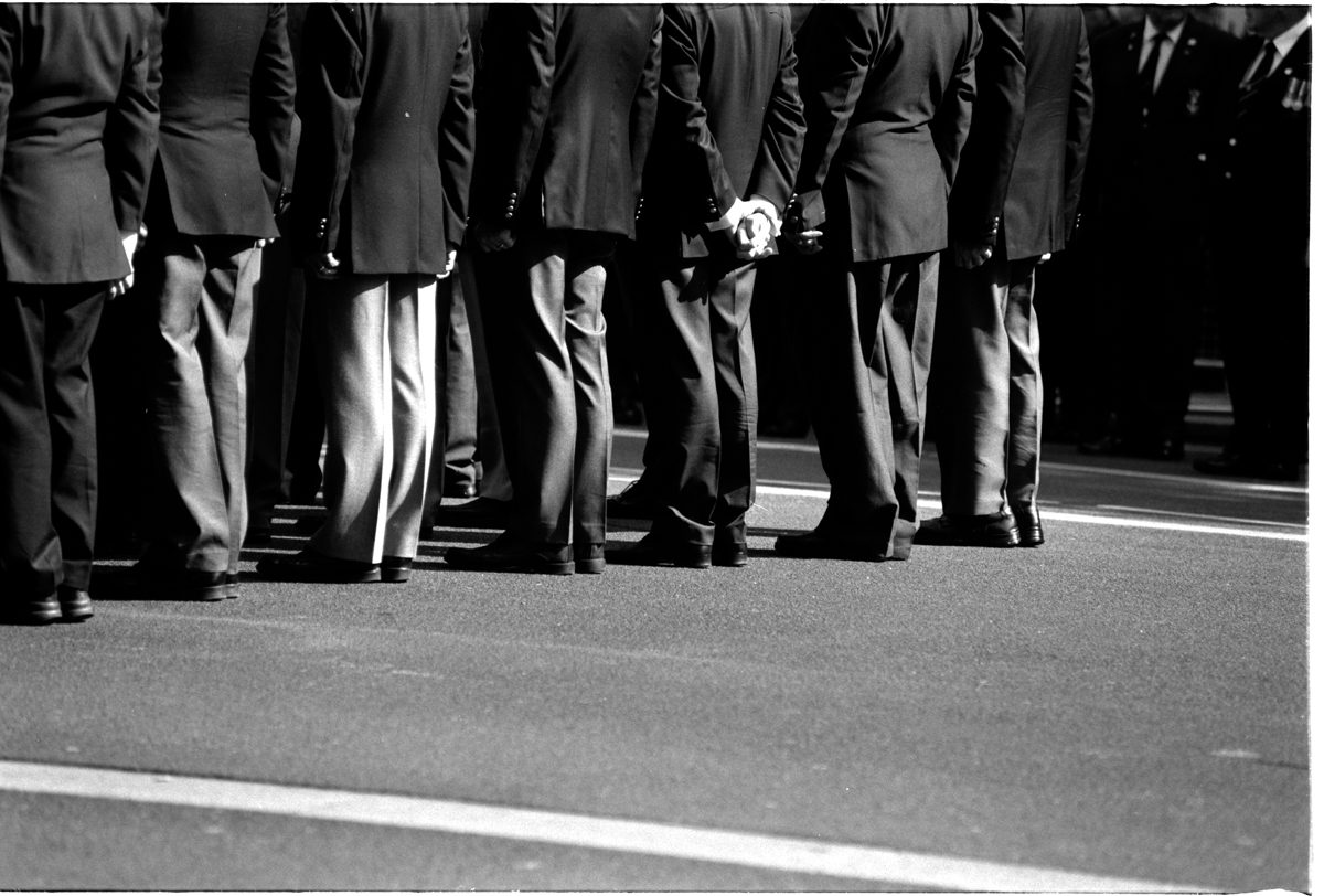 On September 8th I loaded a roll of FP4+ while photographing a Navy Parade on Whitehall. I was really glad with the rendering of the classic emulsion; it really was the perfect fit for shooting the uniforms. I spent my time looking for things that stood out a little bit from the lines, the broken patterns and asymmetry that would make my images a little more interesting.