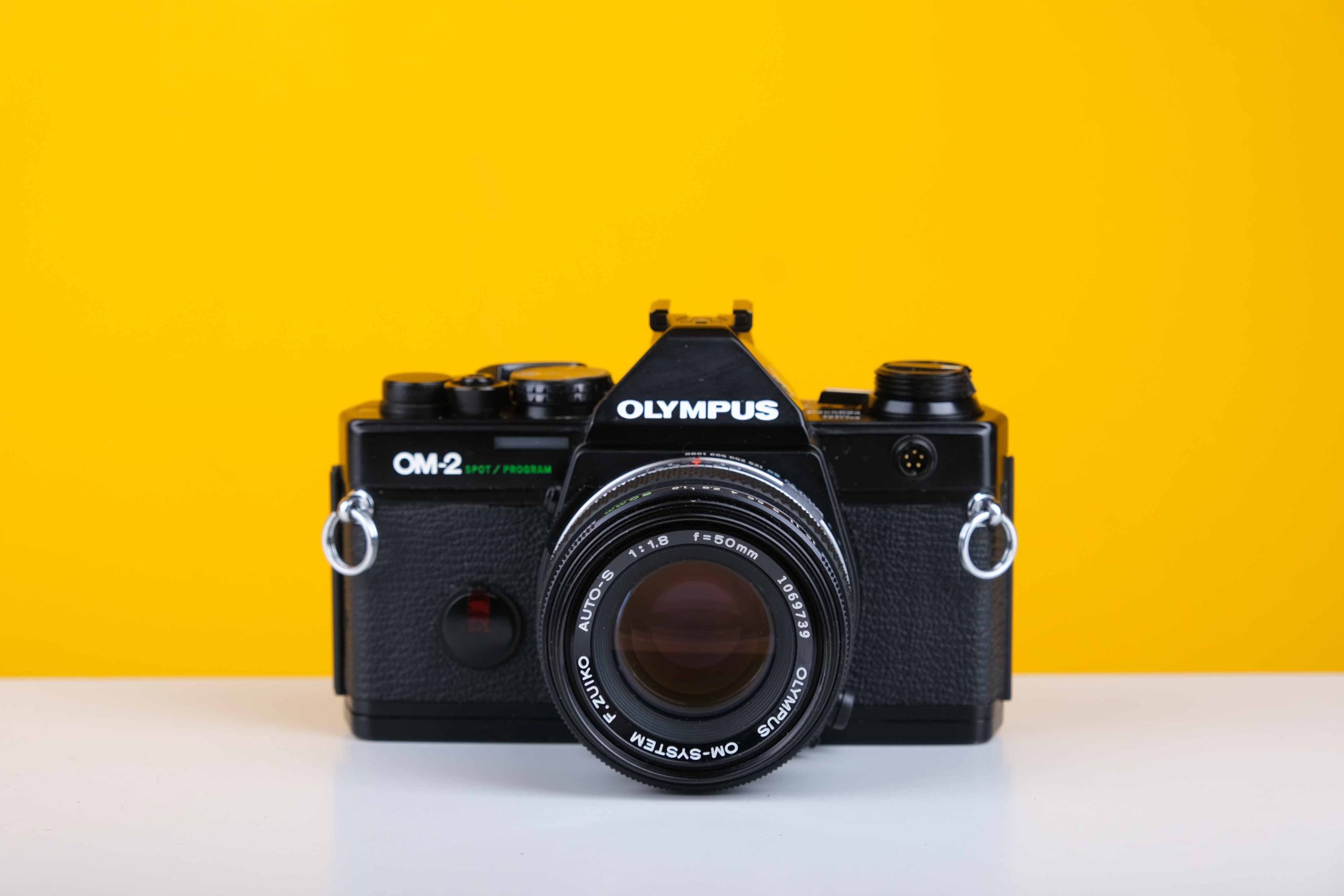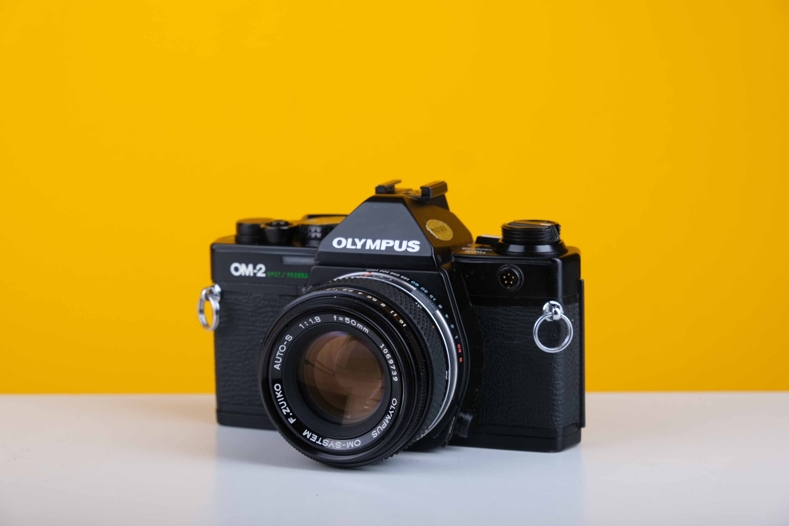 An Olympus OM2 spot program with a Zuiko 50mm f1.8 lens donated by Vintage Camera Hut.